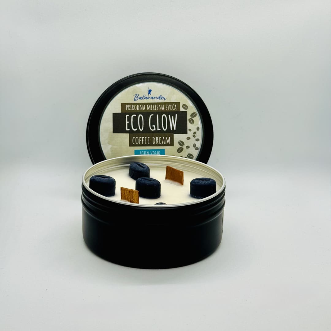 Sa sastojcima poput drvenih fitilja, sojinog voska i mirisnih ulja, upakovanih u elegantnu aluminijumsku kutijicu, stvara sofisticiran ambijent. Razmazite svoja čula uz Eco Glow Coffee Dream, pridružujući se prirodnom luksuzu i dugotrajnom mirisnom doživljaju.